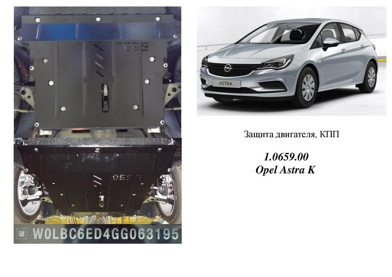 Защита двигателя Opel Astra K 1,6CDTI; 1,4i с 2015г