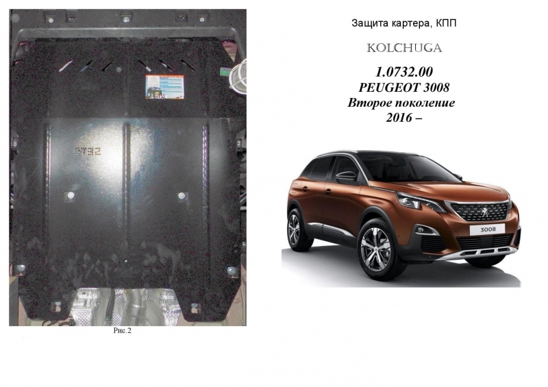 Защита двигателя Peugeot 3008 2.0 BlueHDi (АКПП) с 2016г